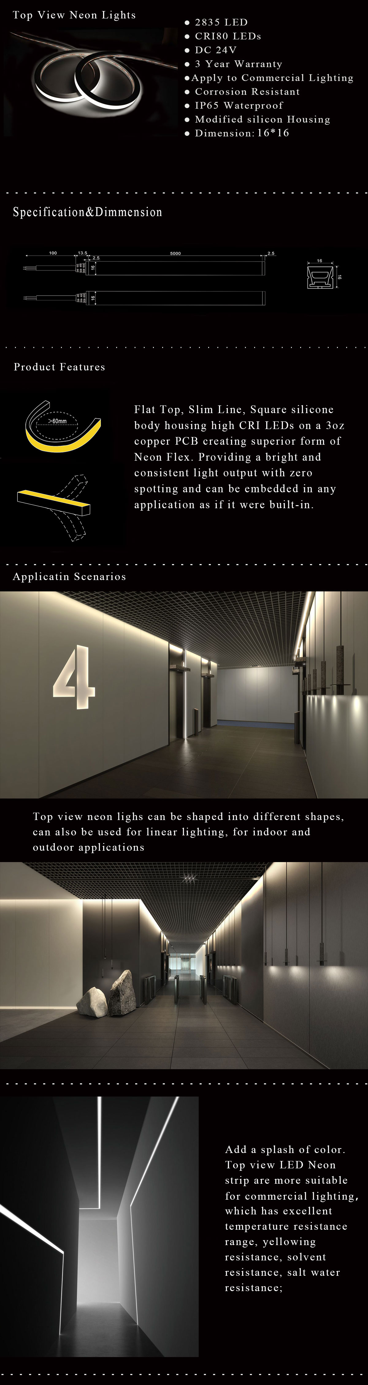 NEON FLEX LED STRIP -- 2835-120D-24V-16*16-Top view